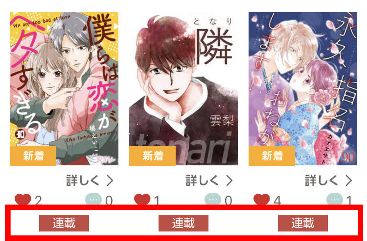 各作品の配信状況が一目で分かるアイコンが追加されました。